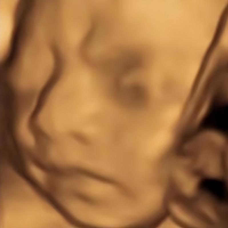 我们笔记的内容也很简单,就是婴儿的四维彩超图片和绘制出的出生图的拼图,类似于下面这种